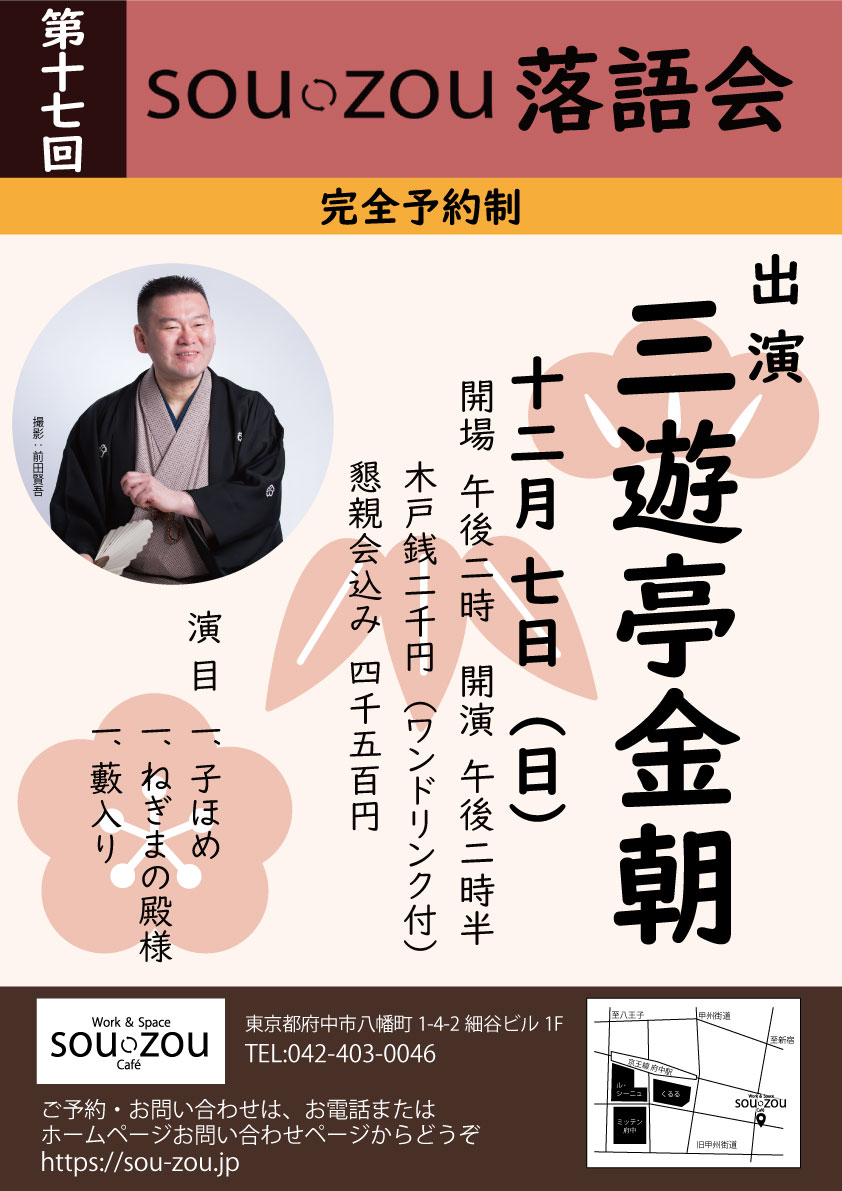 2025/12/7 sou-zou落語会『三遊亭金朝』開催